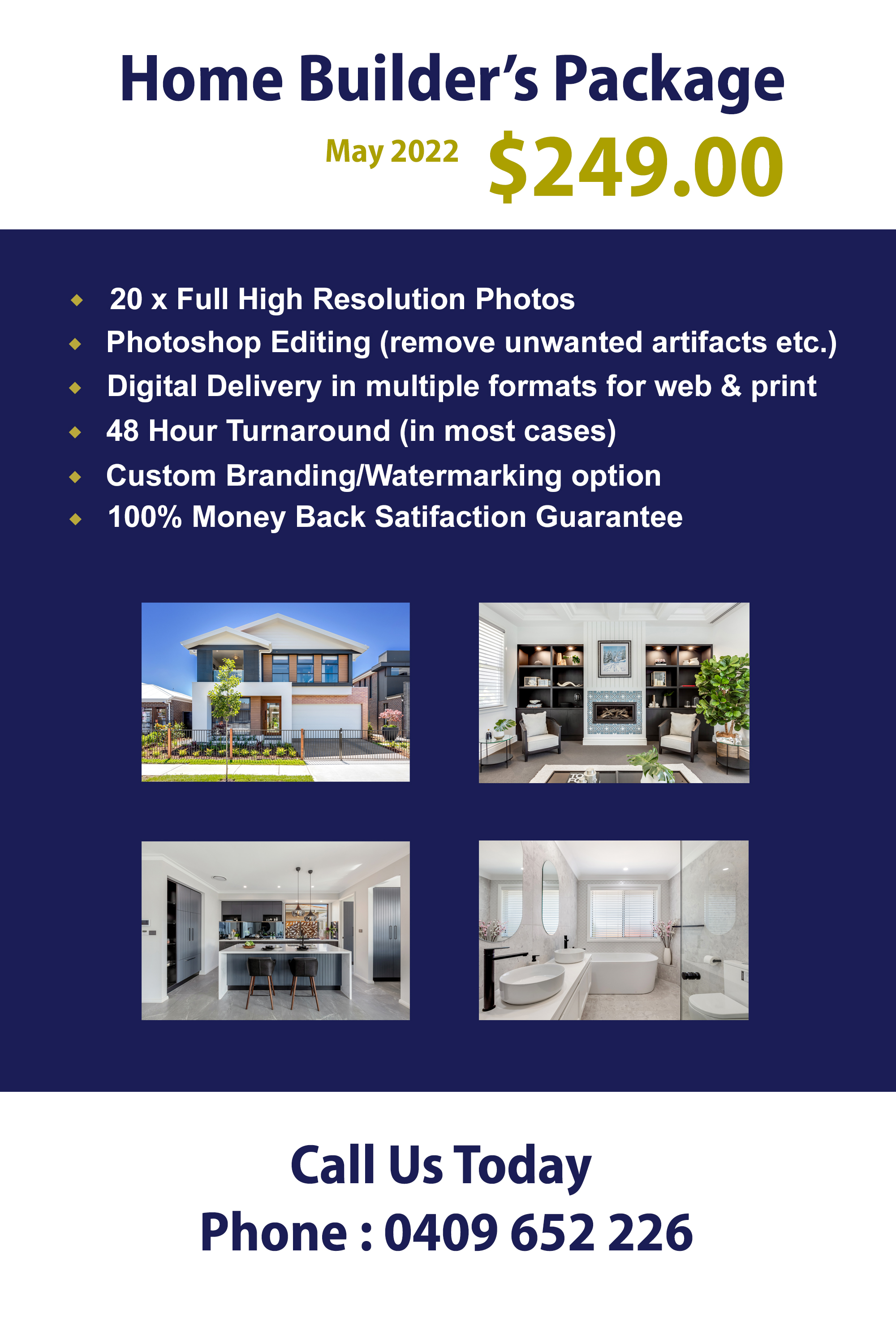 Real 2 Reel productions have a home builders special for May/June 2022.  Our photographers will be visiting selected display villages during May and June and offering a heavily discounted photo package.  This package is only available on selected dates as listed.